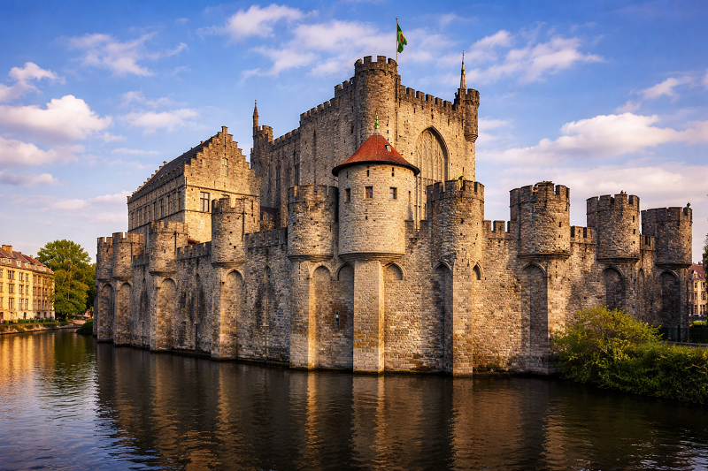 In the historic center of Ghent stands Gravensteen, a medieval fortress built in the 12th century. With its high stone walls, defensive towers, and imposing gates, the castle once served as the residence of the Counts of Flanders. Today it offers visitors a vivid glimpse into medieval life and the turbulent history of the region.