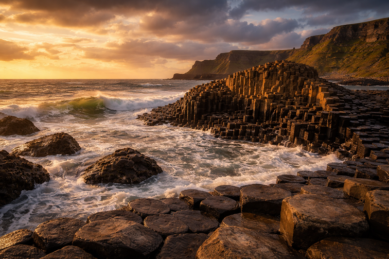 En la costa de Irlanda del Norte, el paisaje adopta una forma inesperada. Miles de columnas de basalto crean un patrón ordenado a lo largo del litoral, como si hubieran sido diseñadas en lugar de formadas por una erupción. Su precisión geométrica contrasta con el movimiento constante del mar.