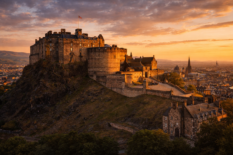 Edimburgo se desarrolla a partir de su castillo. Situada sobre una roca volcánica, la fortaleza domina el horizonte y actúa como punto de referencia natural para toda la ciudad. Calles, edificios y miradores parecen orientarse hacia él.